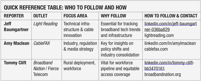 These three journalists represent the essential edges of the broadband story: technology, industry, and community. Following them is one of the smartest ways to stay informed as policy, funding, and infrastructure buildouts continue shaping the future of connectivity.